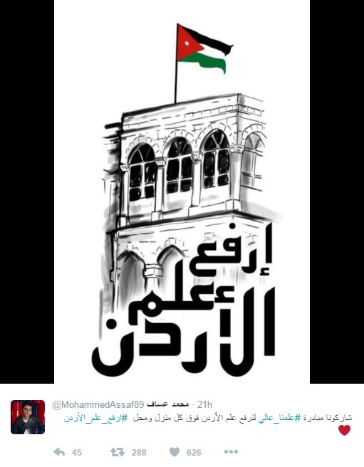 وقد لاقت المبادرة إقبالاً واسعاً ودعماً كبيراً، من مستخدمي ومؤثري وسائل التواصل الاجتماعي، حيث تم استخدام الوسوم (هاشتاغ) #علمنا_عالي و #ارفع_علم_الأردن، حيث كان من أبرز الداعمين لهذه المبادرة كل من الفنان الإماراتي حسين الجسمي، والفنانة الإماراتية أحلام، والفنان الفلسطيني محمد عساف، والإعلامي اللبناني نيشان، والفنان الأردني صوت الأردن صوت زين، عمر العبداللات، بالإضافة إلى العديد من الشركات والمؤسسات الوطنية الأردنية، ونشطاء مواقع التواصل الإجتماعي.