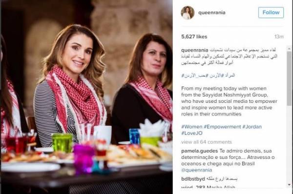 وعلقت جلالة الملكة على صفحتها الرسمية على الإنستجرام قائلة: 'لقاء مميز بمجموعة من سيدات نشميات التي تستخدم الإعلام الاجتماعي لتمكين والهام النساء لقيادة أدوار فعالة أكثر في مجتمعاتهن'.