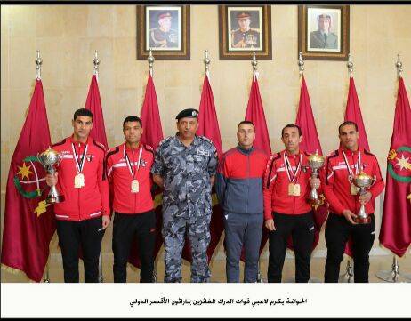 كرم المدير العام لقوات الدرك اللواء الركن حسين محمد الحواتمة امس الأربعاء اللاعب عبدالله مشافق السعود ولاعبون اخرون من قوات الدرك الذين حصدوا المراكز الأولى في ماراثون الأقصر الدولي بمصر.