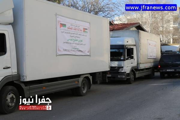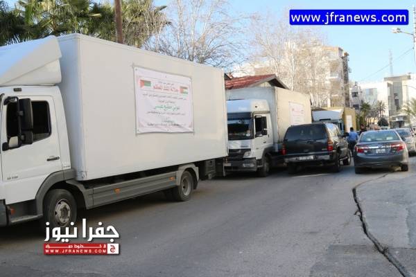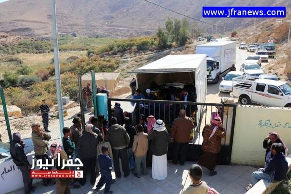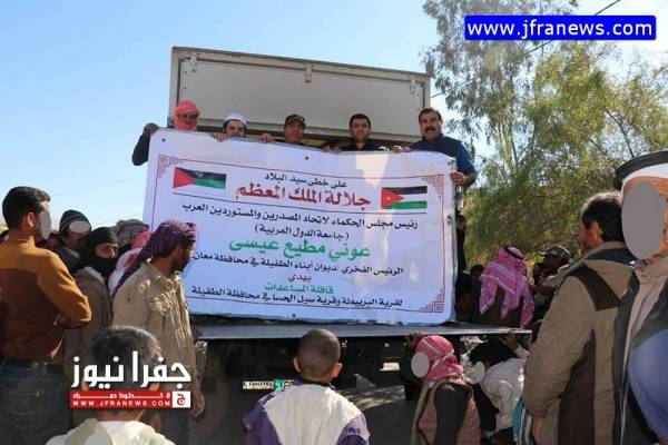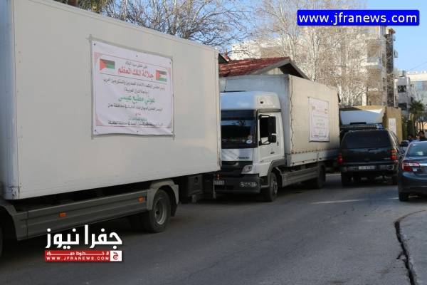وانطلقت الشاحنات من منزل مطيع صباح امس االجمعة بإتجاه لواء عي وصولا بسيل الحسا ومن ثم قرية البربيطا وصولا الى قرية الرويم والى جرف الدراويش جنوب المملكة.