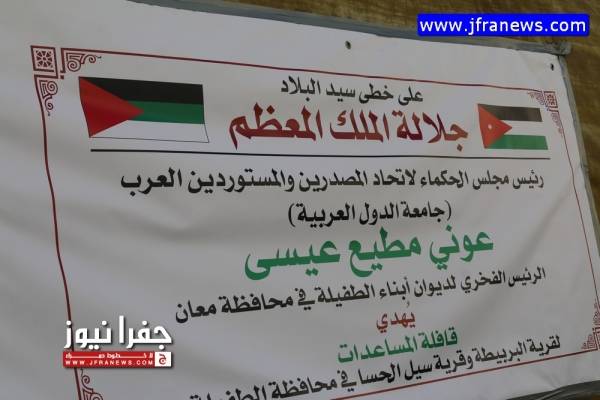 وقال السفير عوني مطيع انه وتلبية لتوجيهات واوامر جلالة الملك عبدالله الثاني بن الحسين في التخفيف واغاثة العائلات الفقيرة في ارجاء الوطن ونتيجة للظروف الاقتصادية الصعبة التي يمر بها الاردن قد قام بتسيير 10 شاحنات الى المناطق الاشد فقرا في جنوب المملكة،وذلك ضن سلسلة من المبادرات الخيرية التي قام بها.