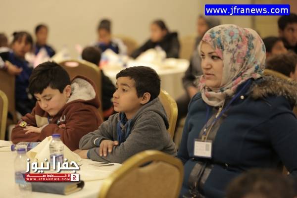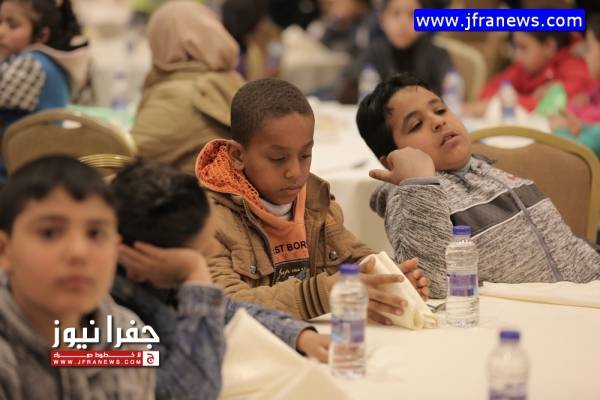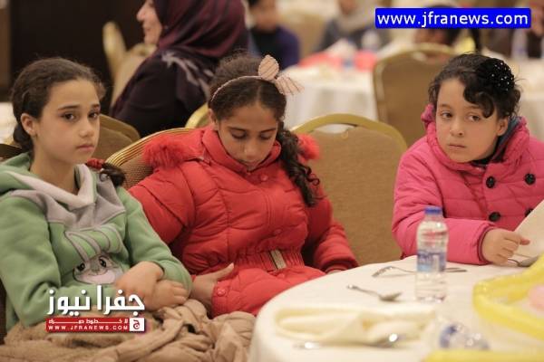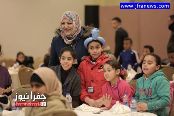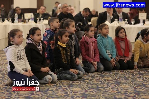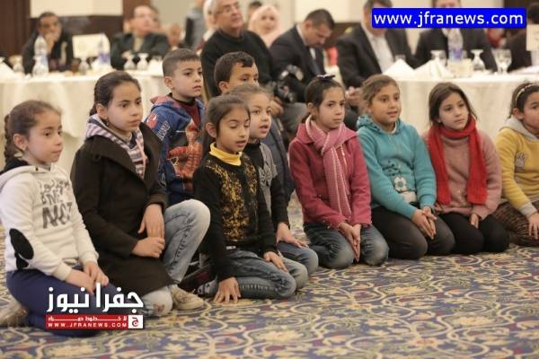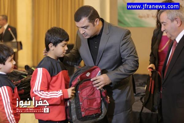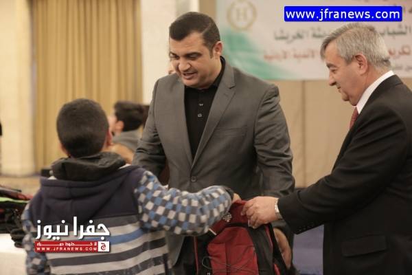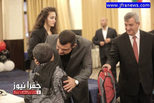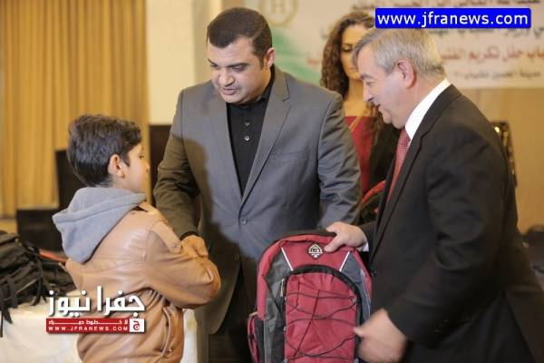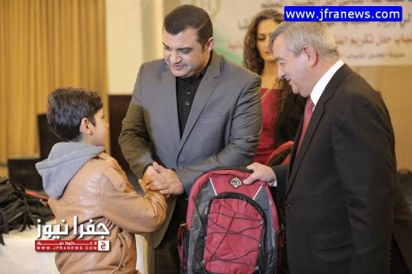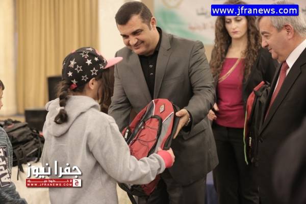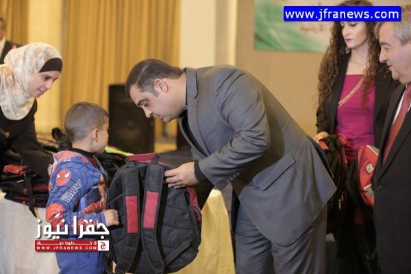 وكرم وزير الشباب المهندس حديثا الخربشا الاطفال المشاركين في الحفل بتوزيع حقائب مدرسية عليهم .