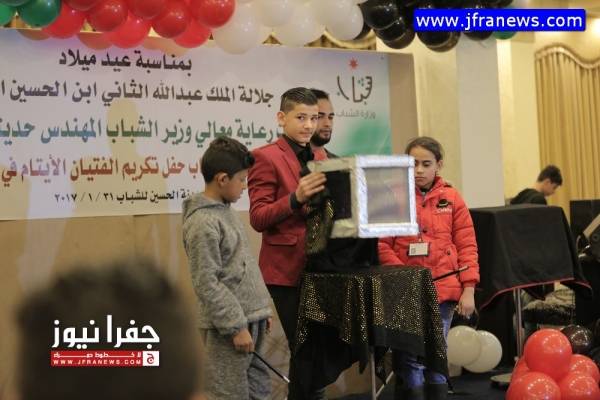 اقامت وزارة الشباب صباح اليوم الثلاثاء في مدينة الحسين للشباب حفل تكريم الفتيان في الاندية الاردنية بمناسبة عيد ميلاد جلالة الملك عبدالله بن الحسين .