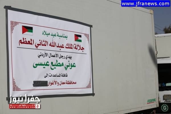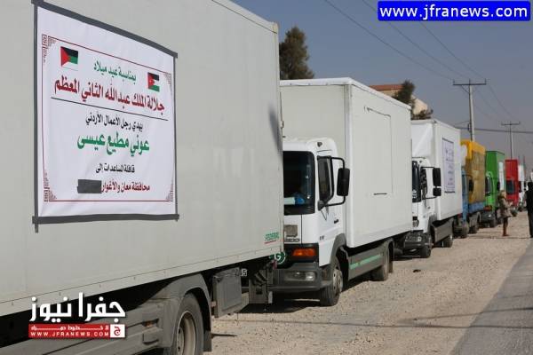 على خطى سيد البلاد جلالة الملك عبدالله الثاني ابن الحسين، وبمناسبة عيد ميلاده الميمون، جابت قافلة طرود مساعدات عدداً واسعا من ألوية وقرى محافظة معان والأغوار، لترسم الأمل على وجوه الأسر العفيفة وأطفالهم.