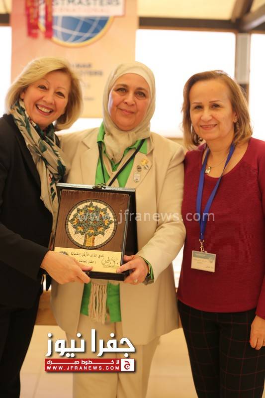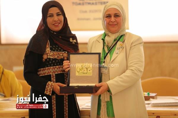وفي نهاية اللقاء قدمت رئيسة النادي ماجدة ماضي درع الفنار للعين هيفاء النجار تقديراً لحضورها وجهودها لدعم المرأة والسيدة الاردنية الدائم بنشاطاتها داخل الأردن وخارجها وقامت السيدة التوستماستر نوال قدومي بإهداء العين نسخة من كتابها عن الطبخ لضيفات النادي .