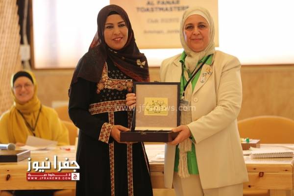 وخلال الللقاء قدم اعضاء التوستماستر درع تكريمي لإبنة البادية المبدعه رفيعة عناد التي تعيش بمنطقة الرويشد على حدود العراق وكانت تعيش بظروف صعبة إلا انها عزمت على العطاء حيث سافرت الى دولة الهند للتدريب على الطاقة الشمسية لمدة 6 شهور لتفعل دور المرأة بالعطاء وتكون قدوة للكثير من السيدات من ابناء البادية في منطقتها التي تمكنت بإصرارها من التعلم وإنارة ابناء وسيدات قريتها لتثبت انه لا يوجد مستحيل إذا وجدت الإرادة وعليها كرمت السيدة رفيعة .