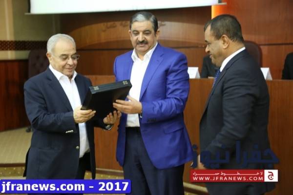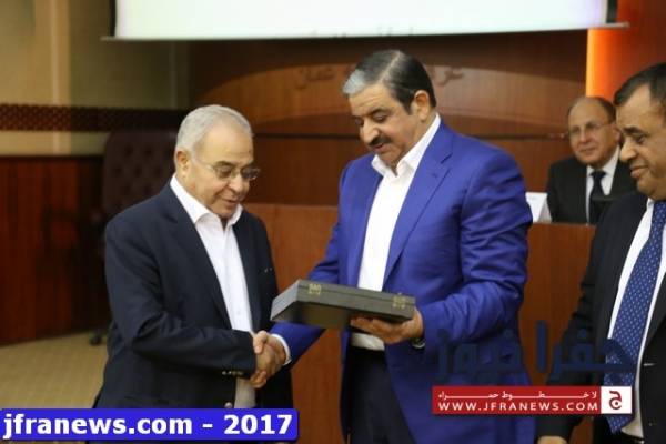 جفرا نيوز - كرم رئيس جمعية الشفافية الاردنية الدكتور محمد هديب وزير الدولة لشؤون رئاسة الوزراء الدكتور ممدوح العبادي بصفته الرئيس السابق للجمعية للجهود التي بذلها في تأسيس وانجاح الجمعية.