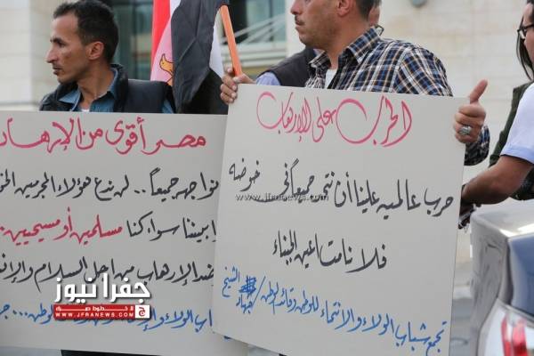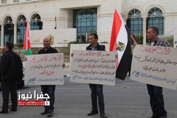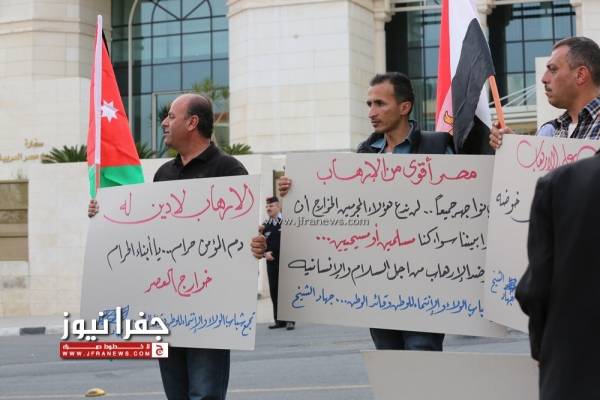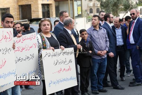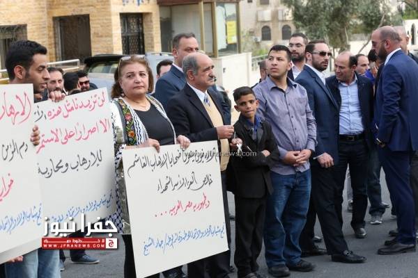 بالصور والفيديو .. وقفة تضامنية مع ضحايا التفجير الارهابي امام السفارة المصرية بعمان