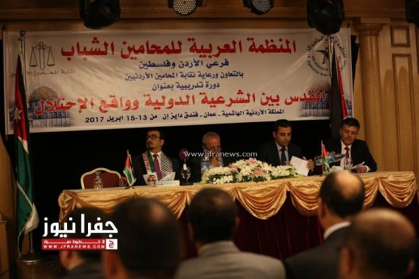 افتتحت المنظمة العربية للمحامين الشباب بفرعيها في الاردن وفلسطين وبالتعاون مع نقابة المحامين الاردنيين دورة تدريبية تحت عنوان "القدس بين الشرعية الدولية واوقع الاحتلال، والتي تقام في فندق "دايز ان" في الفترة الواقعة بين ١٣-١٥ من الشهر الحالي.