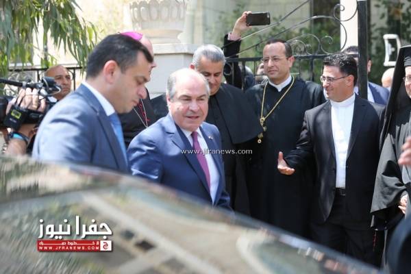 بالصور والفيديو .. الملقي والفايز يهنئوا المسيحين في زيارة لمطرانية الروم الارثوذكس