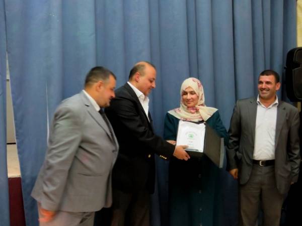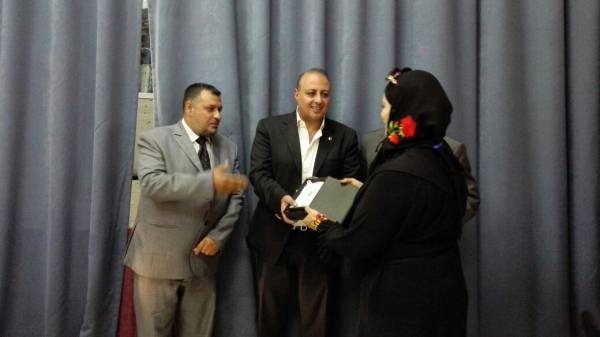 وفي نهاية الحفل سلم راعي الحفل والى جانبه مدير المركز الشهادات والجوائز التقديرية للخريجات وللمكرمين والمكرمات من كادر المركز .