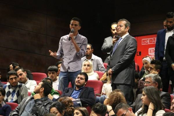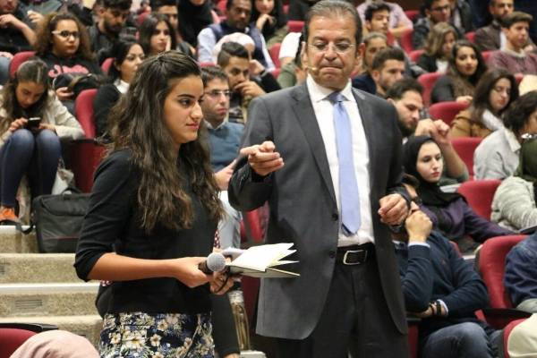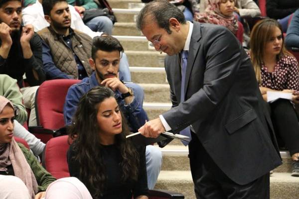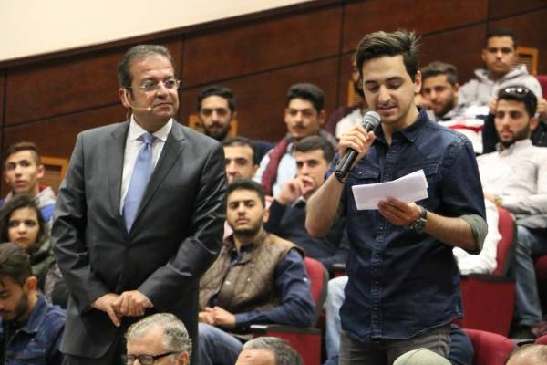 جفرا نيوز - اطلق برنامج الوسط على راديو فن وجامعة الشرق الاوسط برنامجا حواريا نوعيا لجموع الطلبة والاساتذة مع الشخصيات العامة والمسؤولين بدءها بحوار شفاف ومتكامل مع الدكتور محمد المومني وزير الاعلام والناطق الرسمي للحكومة شمل كافة العناوين والقضايا الراهنة والمواضيع الحساسة التي اثارها طلبة كلية الاعلام والتخصصات الاكاديمية الاخرى وباجندة مفتوحة وبحضور رئيس مجلس الامناء جامعة الشرق الاوسط الدكتور يعقوب ناصر الدين والهيئة الاكاديمي وادار الحوار الزميل الدكتور هاني البدري.