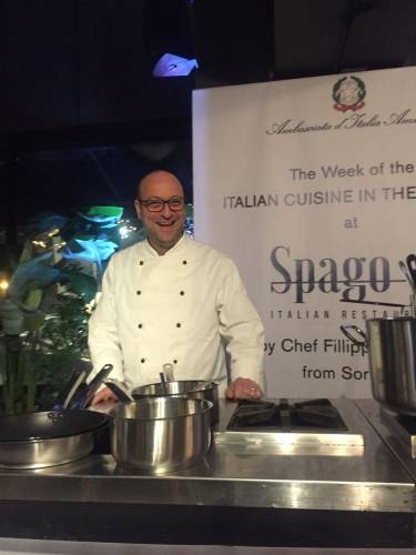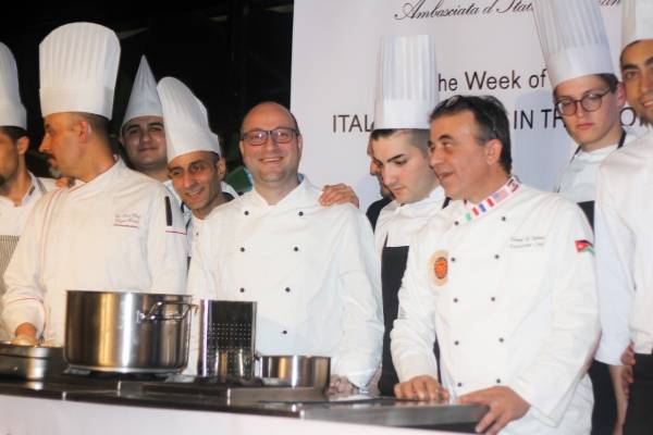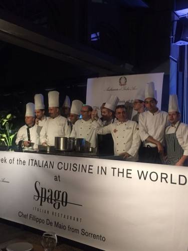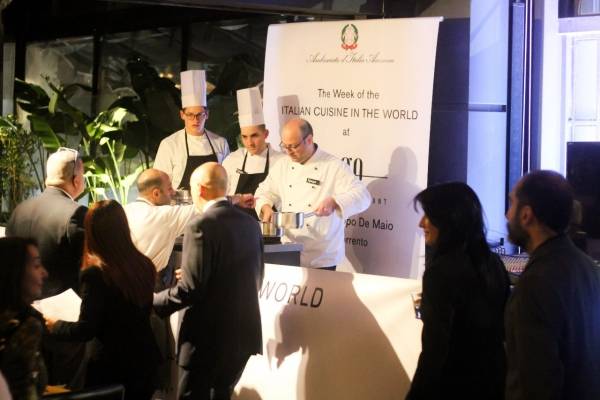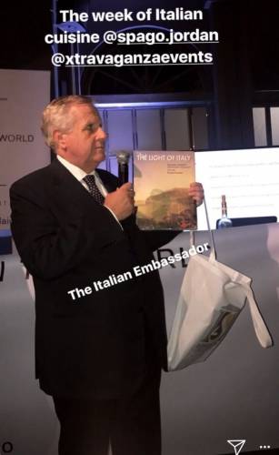 أقامت السفارة الإيطالية في عمّان وبالتعاون مع كل من أكاديمية الطبخ سورينتو ومطعم سباغو Spago الايطالي لحضور عرض الطبخ الحي مع الشيف الايطالي الشهير فيليبو ديه مايو من مدينة سورينتو في حفل اقيم تحت رعاية السفير الايطالي بمناسبة أسبوع المطبخ الايطالي في العالم تبعه حفل عشاء.