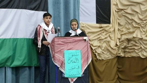 وقد اشتملت الفعالية على عرض مسرحي طلابي يذكر الحضور بوعد بلفور المشؤوم واعتراف بريطانيا بالكيان الصهيوني والانحياز الأمريكي لإسرائيل على حساب العرب، كما اشتملت الفعالية على كلمات طلابية وقصائد شعرية وأغاني وطنية تؤكد مكانة القدس في الضمير العربي.