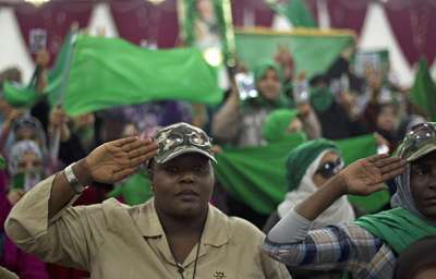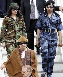 وذكرت جريدة الجارديان البريطانية الاثنين 27 يونيو/حزيران 2001م أن أكثر من 500 سيدة من مختلف الأعمار قد تطوعن لحماية الزعيم الليبي، وارتدين الزى العسكري، وحملن السلاح في مواجهة الناتو.