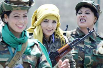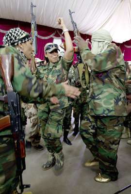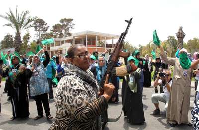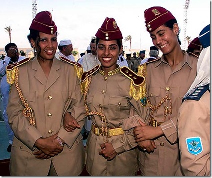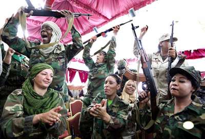 جفرا نيوز-كشف الرئيس الليبي معمر القذافي عن سلاحٍ جديد يستخدمه في حربه ضد الثوار وحلف الناتو؛ وهو جيش من النساء من مختلف الأعمار، حيث احتفلت المجندات وهن يرتدين الزي العسكري بتخريجهن في دفعة جديدة من الجيش الليبي.