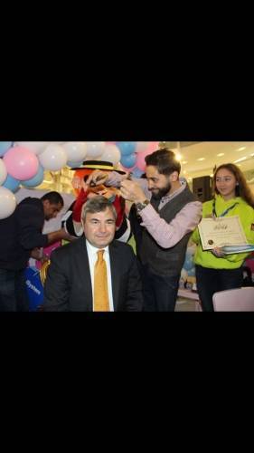 مضيفا : " تم تجمع الأهالي والأطفال اليوم الجمعة الموافق 5/1/2018 في العبدلي مول؛ حيث تم عرض الشعر المستعار المصنوع من خصل المتبرعين، وبألوان متعددة تناسب أشكال وأعمار الأطفال المرضى".