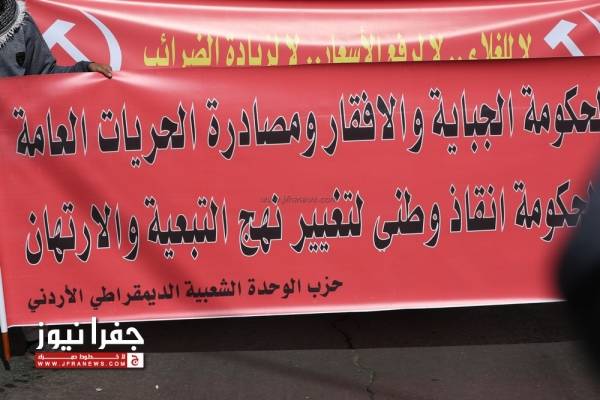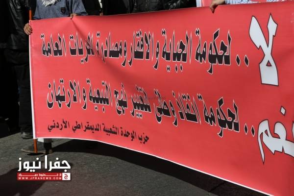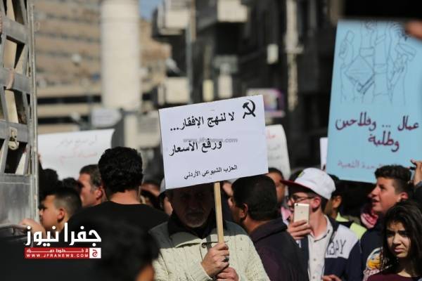ونظم ائتلاف الأحزاب اليسارية والقومية، بعد ظهر الجمعة، مسيرة رافضة لرفع الإسعار، من المسجد الحسيني إلى ساحة النخيل، في وسط عمّان.