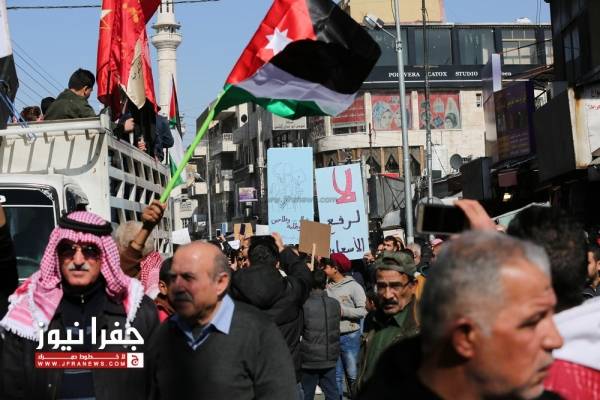 انطلقت مسيرات، بعد صلاة ظهر الجمعة، في عمّان، والسلط والكرك، رفضا لرفع الأسعار.