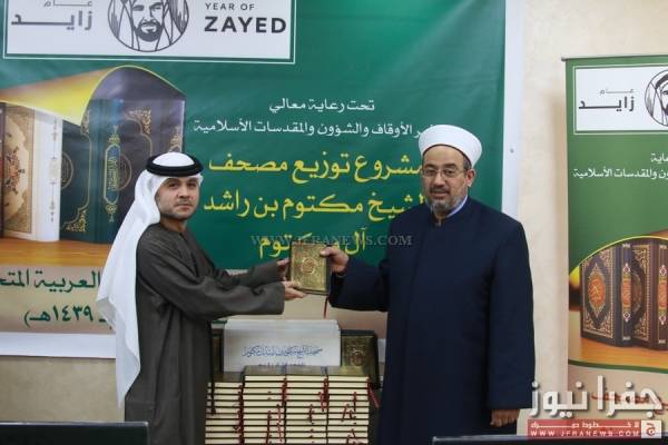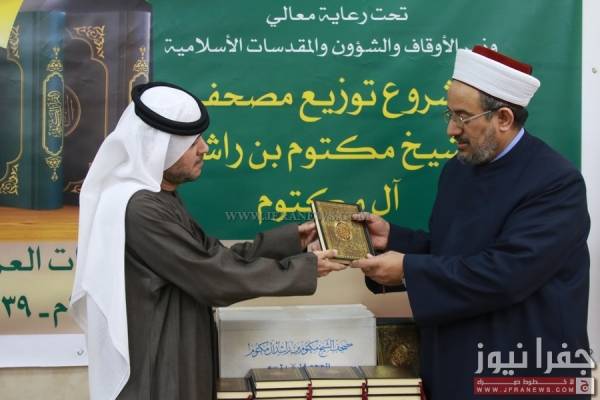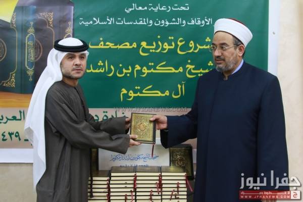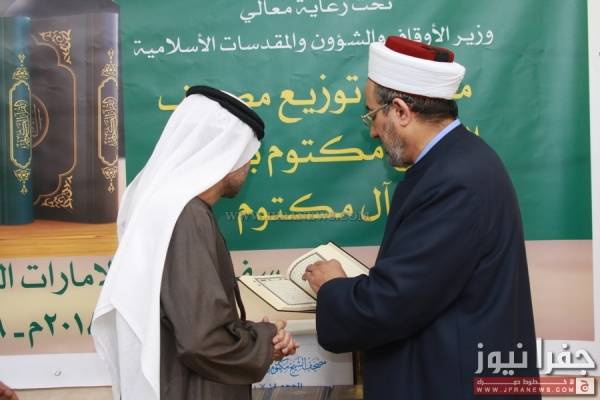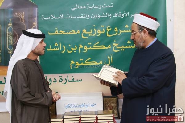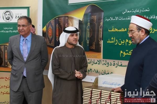 ضمن المبادرات التي ترعاها دولة الإمارات العربية المتحدة في عام زايد 2018، سلّمت سفارة الإمارات بعمّان وزارة الأوقاف والشؤون والمقدسات الإسلامية بالأردن، نحو 1500 مصحف، ضمن مبادرة توزيع مصحف الشيخ مكتوم بن راشد آل مكتوم، وقدم فيصل أحمد آل مالك القائم بالأعمال المصاحف في مقر الوزارة بحضور الوزير وعدد من المسؤولين بالوزارة.