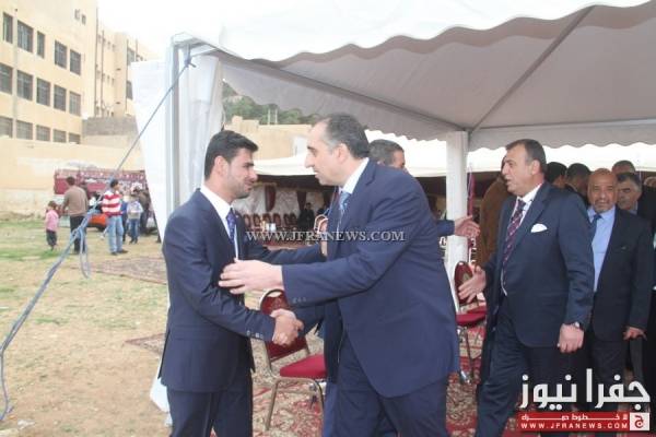 وقام معالي محمد داودية طلب و رجل الاعمال الكبير الشيخ رياض مهيار تحدث مرحبا بالجاهة وتكرم فأعطى.