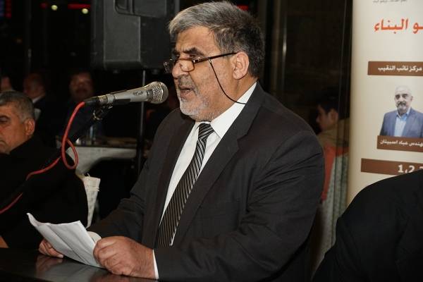 وقال ان المرحلة التي نمر بها ليست بالسهله والظروف قاسية والاقتصاد الوطني يعاني والمنطقة كاملة تمر بمرحلة ركود صعب ... والزملاء المقاولين معظمهم بدون عمل وان وجد عمل لا يغطي مصاريفهم الادارية والمشاكل بحاجة الى رجال مخلصين ليتمكنوا من حلها ، فوالله,, قد اكون جازما هنا بانه ما لنا بعد الله الا ان نعطي ثقتنا بكتلة العمل والانجاز كاملة دون استنثاء .