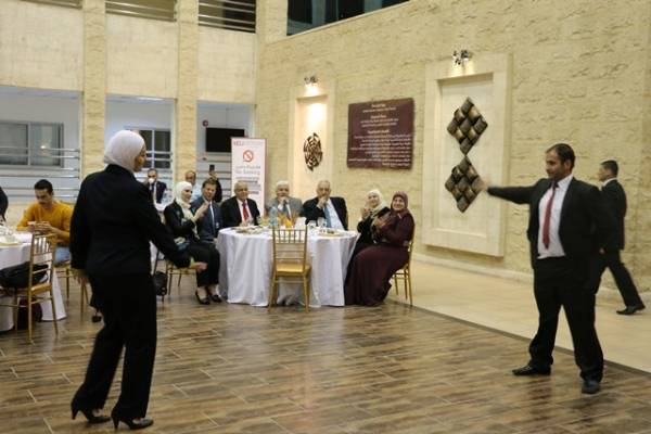 وسلم راعي الحفل الشهادات والهدايا التذكارية للطلبة الأوائل من خريجي الفوج الثاني عشر لطلبة الماجستير والتاسع لطلبة البكالوريوس ( فوج القدس) ، وعدد من أعضاء الهيئة التدريسية وطلبة كلية الحقوق الذين مثلوا الجامعة في مسابقة