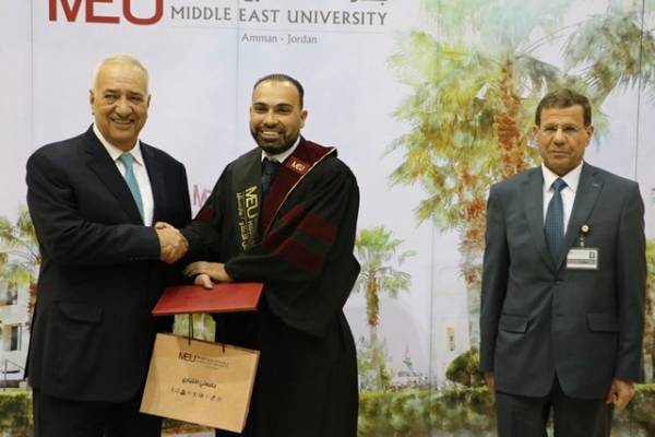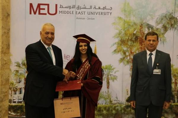 وأعلن الدكتور ناصرالدين أن الجامعة ستمنح المتفوقين من أبنائها أولوية التعيين والايفاد بحسب الانظمة والتعليمات المعمول بها في الجامعة، جاء ذلك خلال الحفل الذي حضره رئيس مجلس الأمناء الدكتور حسام الدين الخطيب ورئيس هيئة المديرين الدكتورة سناء شقوارة، ورئيسالجامعة الأستاذ الدكتور محمد الحيلة ونائبي رئيس الجامعة والأساتذة العمداء والطلبة المكرمين وذويهم وأشار الدكتور ناصرالدين أن الجامعة تميزت باحتضانها طلبة متميزين أكاديميا وفنيا وثقافيا ، وإن إعطاء الأوائل أولوية التعيين والايفاد ما هو إلا مكافأة على جهدهم الذي بذلوه طيلة السنوات الماضية، مبيناً أن هذا التكريم أصبح تقليدا تخص به جامعة الشرق الأوسط طلبتها الذين تفخر بهم وتباهي الدنيا بتميزهم من أجل بناء أمل جديد في نفوسهم وزرع روح المثابرة والتميز فيهم ، مطالبًا اياهم بالمزيد من الانجاز ومواصلة العطاء.