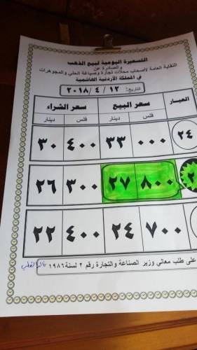 عيار 21 بلغ 27.80 دينارا