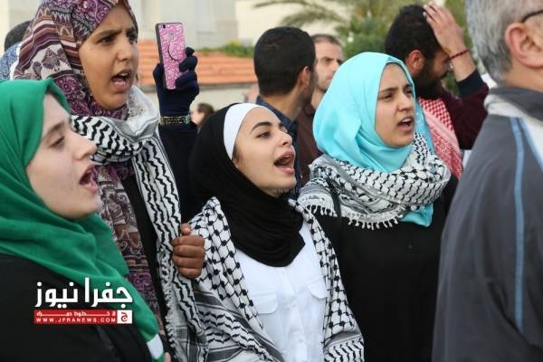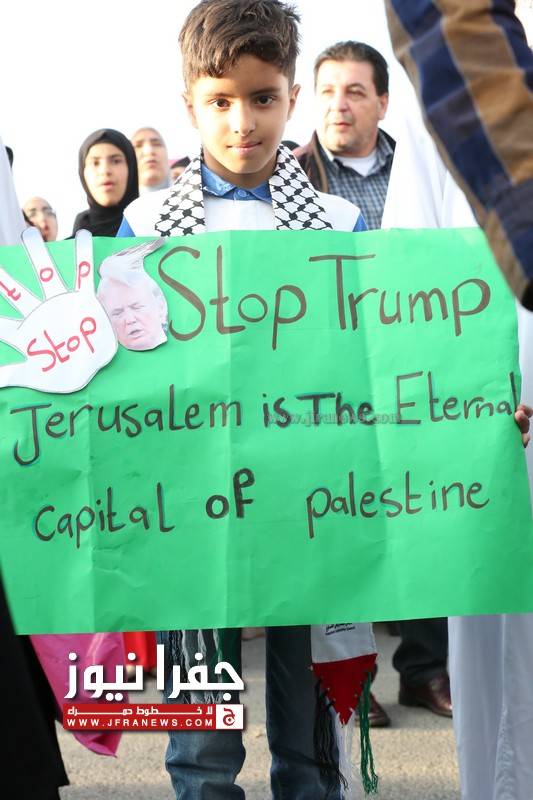 وهتف المحتجون ضد الاحتلال الاسرائيلي والقرار الأمريكي منددين بالخطوة الامريكية اعلان القدس عاصمة لاسرائيل.
