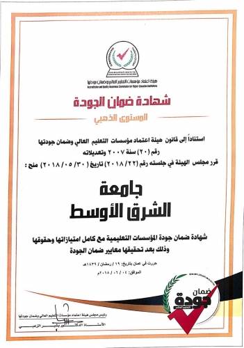 جامعة الشرق الأوسط تتسلم شهادة ضمان الجودة الذهبية