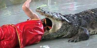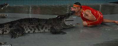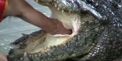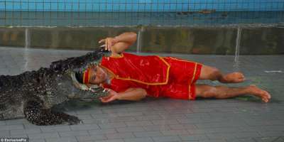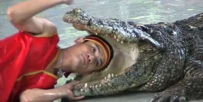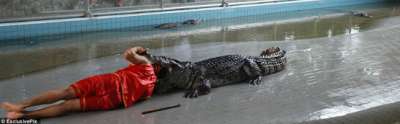 غرائب شاهدوا بالصور..يضع رأسه بين فكي تمساح كبير!!!