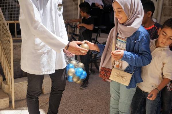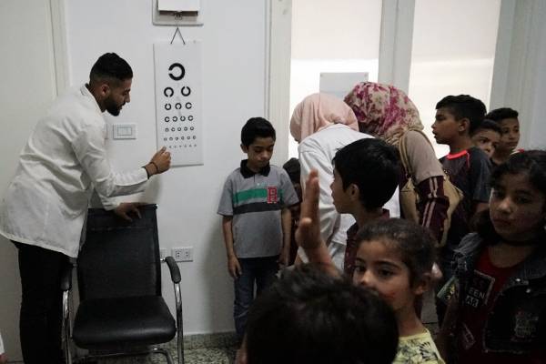 طلبة كلية التمريض من جامعة الزيتونة الأردنية بدورهم قاموا بإجراء فحوصات طبية للأطفال مثل فحص متابعة النمو والتطور وفحص النظر.