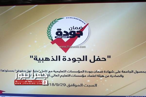 وثمن الزعبي دور فريق العمل والجهد الجماعي الذي نفذه خلال المرحلة الماضية، مبديا سروره بهذا الانجاز، الذي يعني للهيئة الكثير في سعيها لترسيخ ثقافة ضمان الجودة. داعيا الى المحافظة على تم انجازه، مؤكدا ان هذه العملية هي عملية مستمر ولا تتوقف، ولذلك ستكون المتابعة من قبل الهيئة متواصلة وبشكل سنوي، حتى نحافظ على الانجاز الذهبي، سواء على المستوى الاكاديمي وحتى الاداري، النابع بالاساس من تطبيق مبدأي الحوكمة والتخطيط الاستراتيجي.