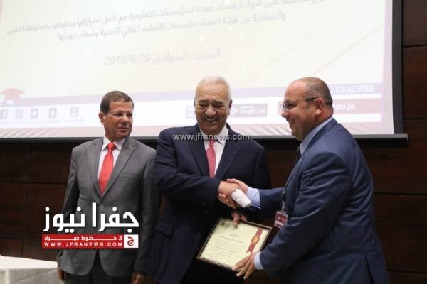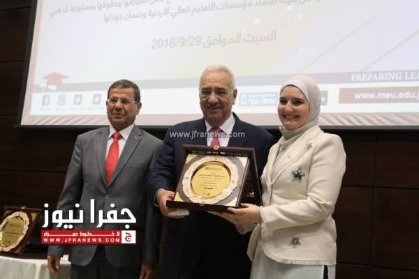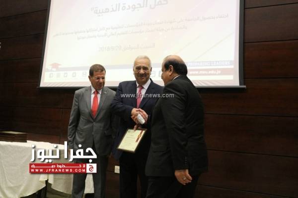وسط أجواء من البهجة والفخر احتفاء بالانجازات التي سطرتها جامعة الشرق الأوسط لهذا العام وكان عنوانها الأوحد الذهب رعى رئيس مجلس الأمناء الدكتور يعقوب ناصرالدين الاحتفالية التي أقامتها الجامعة احتفاء بحصولها على شهادة ضمان جودة المؤسسات التعليمية مع كامل امتيازاتها وحقوقها بمستواها الذهبي والصادرة عن هيئة اعتماد مؤسسات التعليم العالي وضمان جودتها الأردنية.