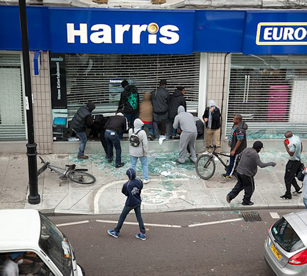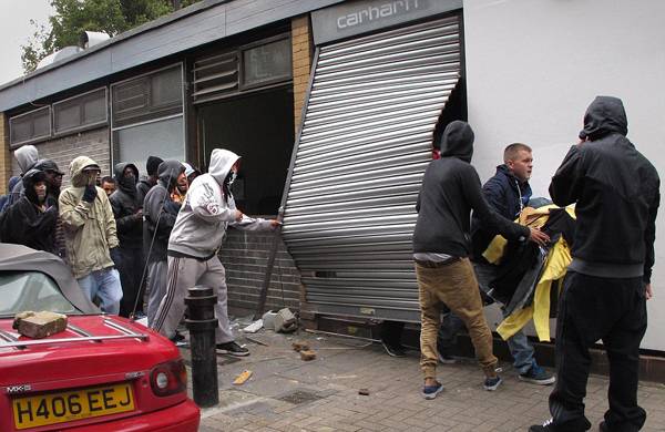 جفرا نيوز - جفرا نيوز-شهدت لندن، الشهيرة بلقب عاصمة الضباب، أعمال تخريب وشغب ونهب وحرق للمحال تخللتها حوادث مثل إجبار المارة على خلع ملابسهم في الشارع في عز النهار، وذلك خلال موجة غضب عارمة على إثر مقتل أحد الشباب على يد الشرطة.