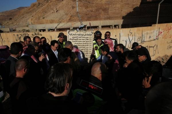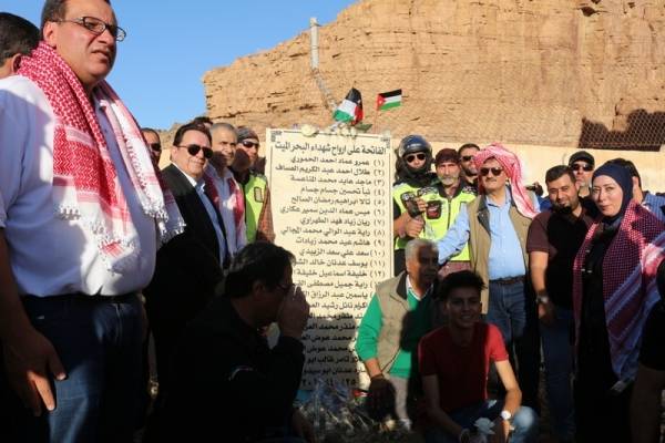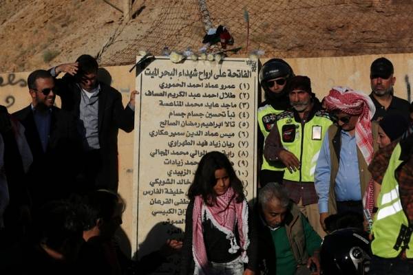 جفرا نيوز – بعد مرور اسبوع كامل على فاجعة البحر البحر الميت ، أقامت مجموعة "اخبار جفرا نيوز – واتس اب" نصبا تذكاريا تخليدا لشهداء تلك الحادثة اليوم الخميس وبمشاركة عدد كبير من اصاحب المعالي والسعادة والسياسيين والاعلاميين والقانونيين والباحثين ورجال الاعمال ترافقهم وسائل الاعلام ،وبمشاركة مميزة من فريق هوندا رايديرز ، حيث تم التوجه لموقع الحادثة وإقامة نصب تذكاري تخليداً لشهداء الحادثة المفجعة التي راح ضحيتها 21 شخصاً معظمهم من الاطفال.