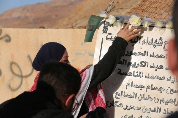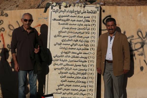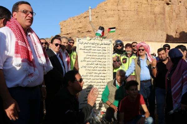 وقام المشاركون بقراءة الفاتحة على ارواح الشهداء ووضعوا نصبا تذكاريا بأسماء الشهداء في الموقع، اضافة لإلقاء كلمات تأبينيه للتذكير بهذه الكارثه التي المت بالشعب الاردني والعالم باسره ، حيث وصفت الاعلامية د.اخلاص يخلف العبادي ان تلك الحادثة كانت فاجعة لكل الاردنيين وان ترابط الشعب بكافة اطيافه كان سبب تخفيف المصاب داعية الله بالرحمة والقبول للشهداء.