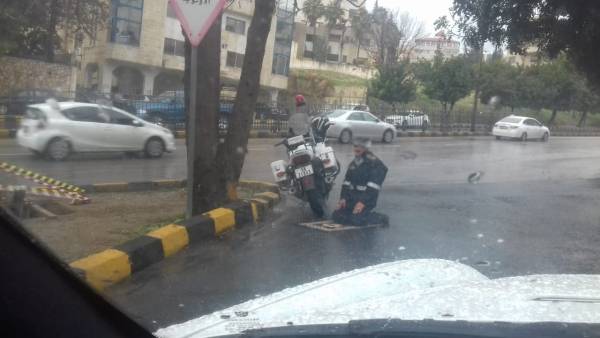 جفرا نيوز - تصوير شامان المجالي - لم يتوانى رقيب سير في الامن العام عن اداء الواجب الديني تجاه ربه رغم انشغاله بعمله و قساوة الشتاء و البرد القارس في الشارع العام.
