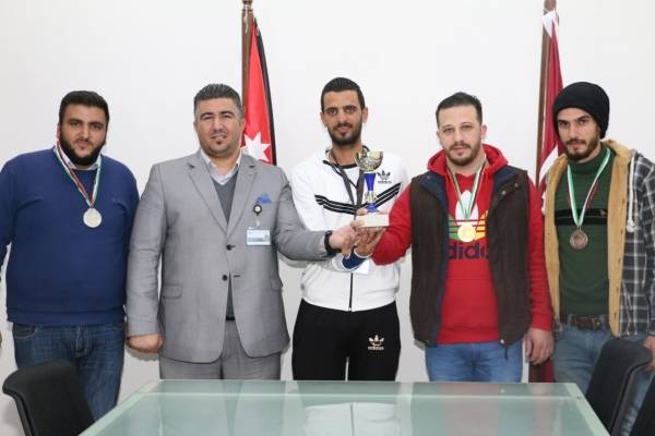 واسفرت البطولة التي نظمتها شعبة النشاط الرياضي في عمادة شؤون الطلبة ، التي شارك فيها اثنان وعشرون طالبا من مختلف الكليات والتخصصات، عن تتويج الطالب في تخصص الهندسة المدنية معاوية عيسى شقبوعة، بالمركز الاول، فيما حل الطالب في تخصص محاسبة غسان عوني معايعة في المركز الثاني، ليكون المركز الثالث من نصيب الطالب في تخصص الصيدلة اسامة فواز حماد.