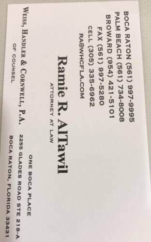يذكر أن المحامي رامي رفعت الطويل انضم الى احد اكبر مكاتب المحاماه في ولاية فلوريدا التي تدير محافظ ماليه واستثمارية كبيره بالإضافة الى الدفاع عن موكليها.