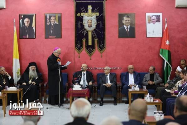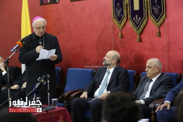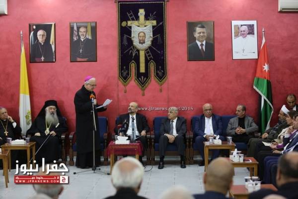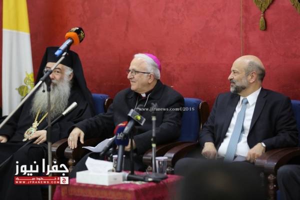 وأكد أن جائزة تمبلتون التي تسلمها جلالة الملك لقاء جهوده في تحقيق الوئام بين الأديان هي جائزة لكل الأردنيين متمنياً أن تعم الطمأنينة والسلام الأردن وفلسطين والقدس والعالم أجمع. من جانبه، قال سيادة المطران وليم الشوملي مطران اللاتين في الأردن باسم رؤساء الكنائس في الأردن إننا نتابع نشاط حكومتكم وجهدكم الدؤوب لجعل الأردن دولة مؤسسات وقانون من أجل أن يزدهر اقتصاده ويرتفع المستوى المعيشي للمواطن.