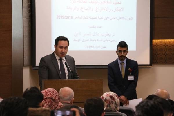 جاء ذلك في محاضرة القاها الدكتور ناصر الدين تحت عنوان "تحليل المفاهيم وتوليف العلاقة بين الابتكار والاختراع والابداع والريادة" في افتتاح الموسم العلمي والثقافي الاول لكلية الصيدلة في جامعة الشرق الاوسط، وحضرها نائب الرئيس الدكتور محمود الوادي وعميد كلية الصيدلة الدكتور عمار المعايطة وعدد من اعضاء الهيئتين التدريسية والادارية في الكلية والطلبة.