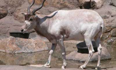 يعيش حيوان The Addax بالصحراء الكبرى. يتميز هذا الحيوان بأن أسنانه مربعة الشكل مثل الأبقار، كما أن قرنه طويل جداً ومنحني.