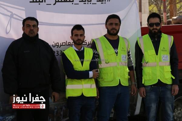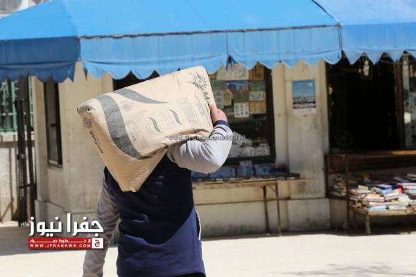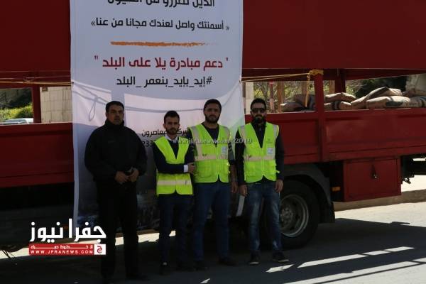 ومن جهتها عمدت شركة المعاصرون بدعم مبادرة يلا على البلد إيد بإيد بنعمر البلد حيث قامت بتوزيع شوالات إسمنت على أصحاب المحلات و التجار لتخفيف العبئ عليهم .