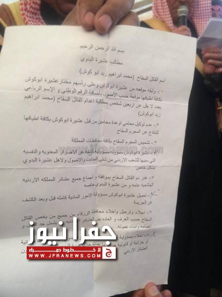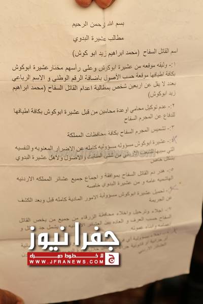 وخلال العطوة، طالب أهالي الطفلة نيبال أبو دية، باعدام القاتل بعد جريمة بشعة هزت المجتمع الاردني.