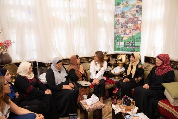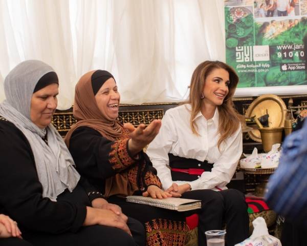 وتبادلت جلالتها الحديث مع مجموعة سيدات ممن يعملن الى جانب ام محمد، حول مشاريعهن المدرة للدخل وأثرها على وضعهن الاقتصادي والاجتماعي.