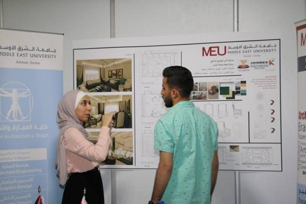 وتضمن المعرض مشاركة طلبة جامعة الشرق الأوسط بتصميم غرفة معيشة مساحة 30 متر مربع من تصميم الطالبين سناء اللحام، وسعادات عبدالقادر باشراف الدكتور شهريار عبد القادر، اشتمل التصميم على واجهات الغرفة، وتصميم قطع الأثاث، وتصميم الأسقف والأنارة، وتصميم الأرضيات. بينَ مشرف المشروع الدكتور شهريار عبد القادرأهمية مشاركة طلبة الجامعة بالمسابقات المحلية والدولية واكسابهم مهارات حول الواقع النظري والتطبيقي.