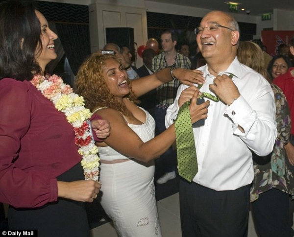 البرلمانى فاز- 54 عاما- يرتدى بدلة رمادية وربطة عنق خضراء، حاول أن يتمايل على نغمات الرقص الشرقى ومحاكاة كارولين، وقد شهد الاحتفال 500 ضيف منهم إد بولز، وزير الخزانة فى حكومة الظل لحزب العمال المعارض وزوجته إيفيت كوبر وزيرة شئون المرأة والمساواة سابقًا.