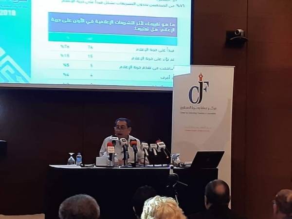 فيما يعتقد 86 صحفيا وصحفية من أصل 100 أن التشريعات الناظمة للإعلام الأردني "تسهم في انتهاكات تقع على العاملين في الإعلام.